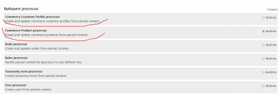 Commerce Feeds - расширяет список сущностей feeds - доавляет возможность импорта товаров (product variation), профилей покупателей и т.д. смотрите на скрине ниже