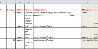 1. В нашем ексель файлике мы указываем, через запятую(или любой другой разделитель) список изображений