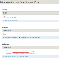 В разделе действие добавляем "Выполнение собственного PHP кода"