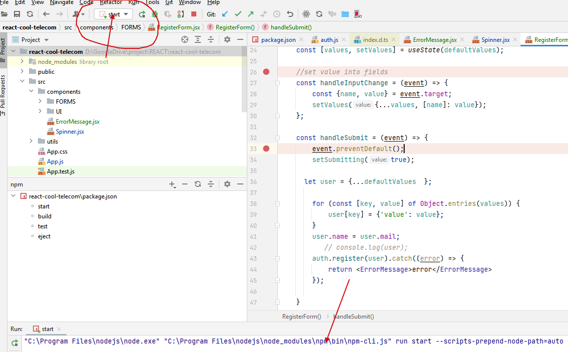 4. Далее сначала стартуем наш проект без дебага, просто выбираем start