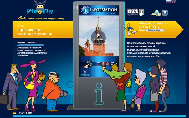 Компания предоставляет сеть информационных киосков по Санкт-Петербургу. Управление киосками (редактирование/модерация контента) происходит через веб-интерфейс. Для системы были написаны ряд модулей: